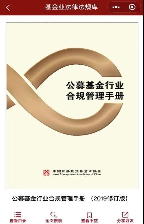 協會《公募基金行業合規管理手冊》在“中國基金業法律法規庫”小程序 中正式上線